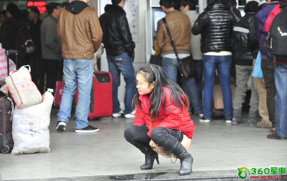 2012年1月5日,成都火车北站,由于购票排队时间太长,女子内急当街撒尿。