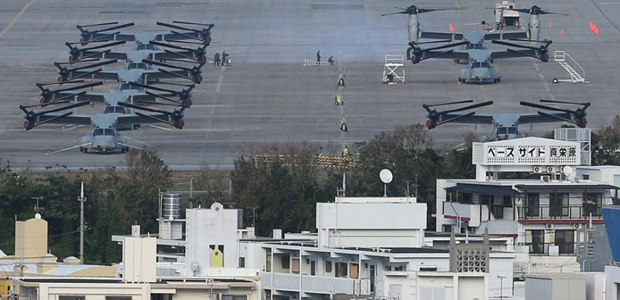 日本《产经新闻》记者近日走进美国驻日本冲绳海军陆战队基地,记录了驻日美军的日常训练。《产经新闻》报道中同时高谈美日同盟关系,称两国系“跨越障碍的友情”。图为“鱼鹰”运输机在普天间基地停放。