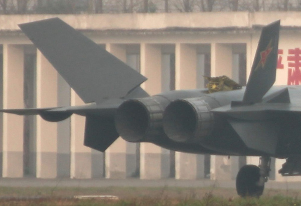这张照片可以看到两台发动机明显不同,也印证了俄制AL-31系列产品参与歼-20研发的消息。