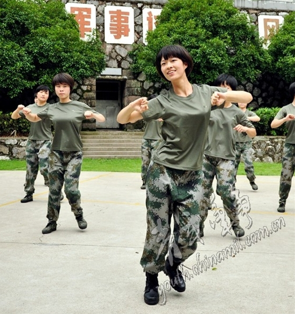 “一二、转身;二二、跳跃……”清脆的口令声伴随着欢快节奏,一群着体能作训服的短发女孩活跃在操场上。跳着健美操,脸上洋溢着笑容,顿时让整个操场生机盎然。曹毛昱摄影