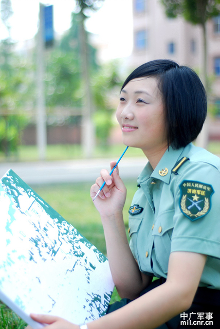 中广网山东11月26日消息(通讯员王涛)一头清爽的短发,微微一笑,露出两个深深的小酒窝,说话时眼睛爱眯成两道“小月牙”;1米62的个头,煞是伶俐乖巧,娇小可爱的她有一副俊俏的娃娃脸。图为身着戎装,英姿飒爽。