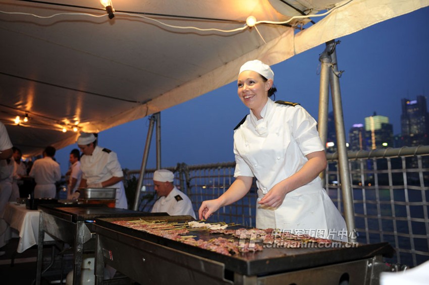 澳女兵甲板上烤肉招待招待中国海军(1)(2)