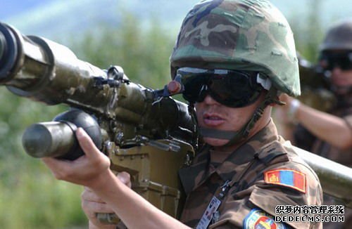 • 资料图:"可汗探索2008"演习上的蒙古国士兵。