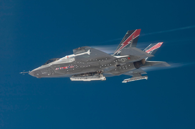 F-35A AF-1战机打开弹舱试飞