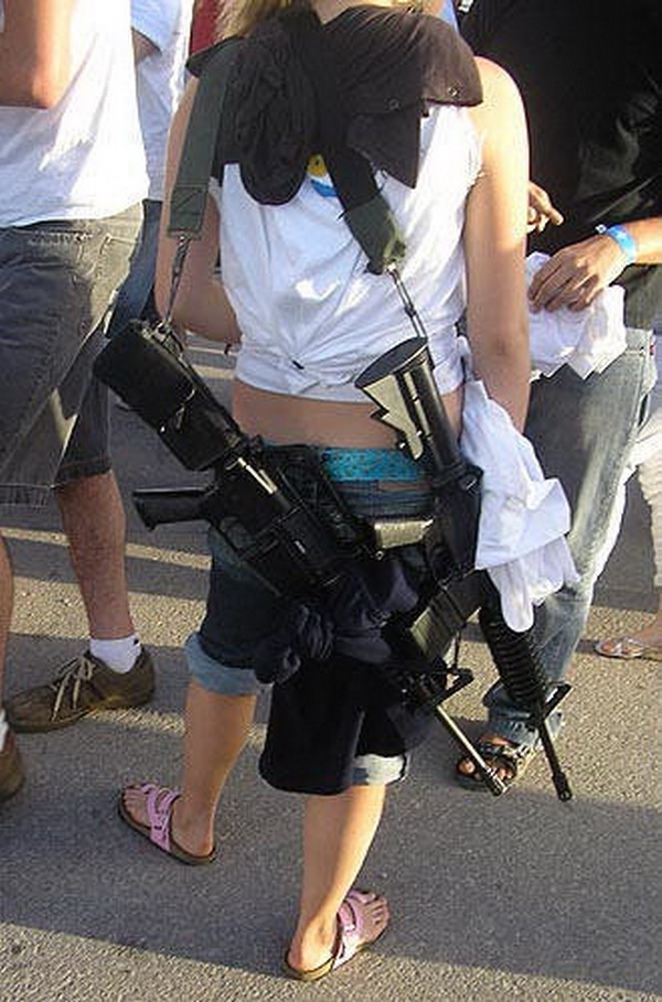 以色列女兵休闲逛街游海滩枪不离手(1)(5)
