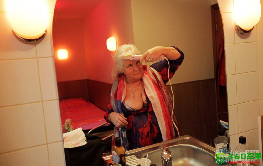 荷兰阿姆斯特丹,70岁的MartineFokkens对镜梳妆,准备工作。