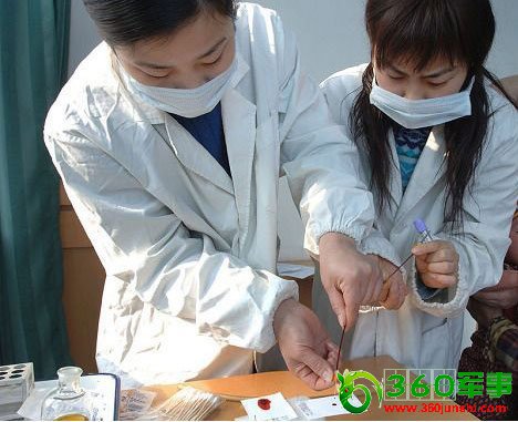 两个工作人员在滴取血样